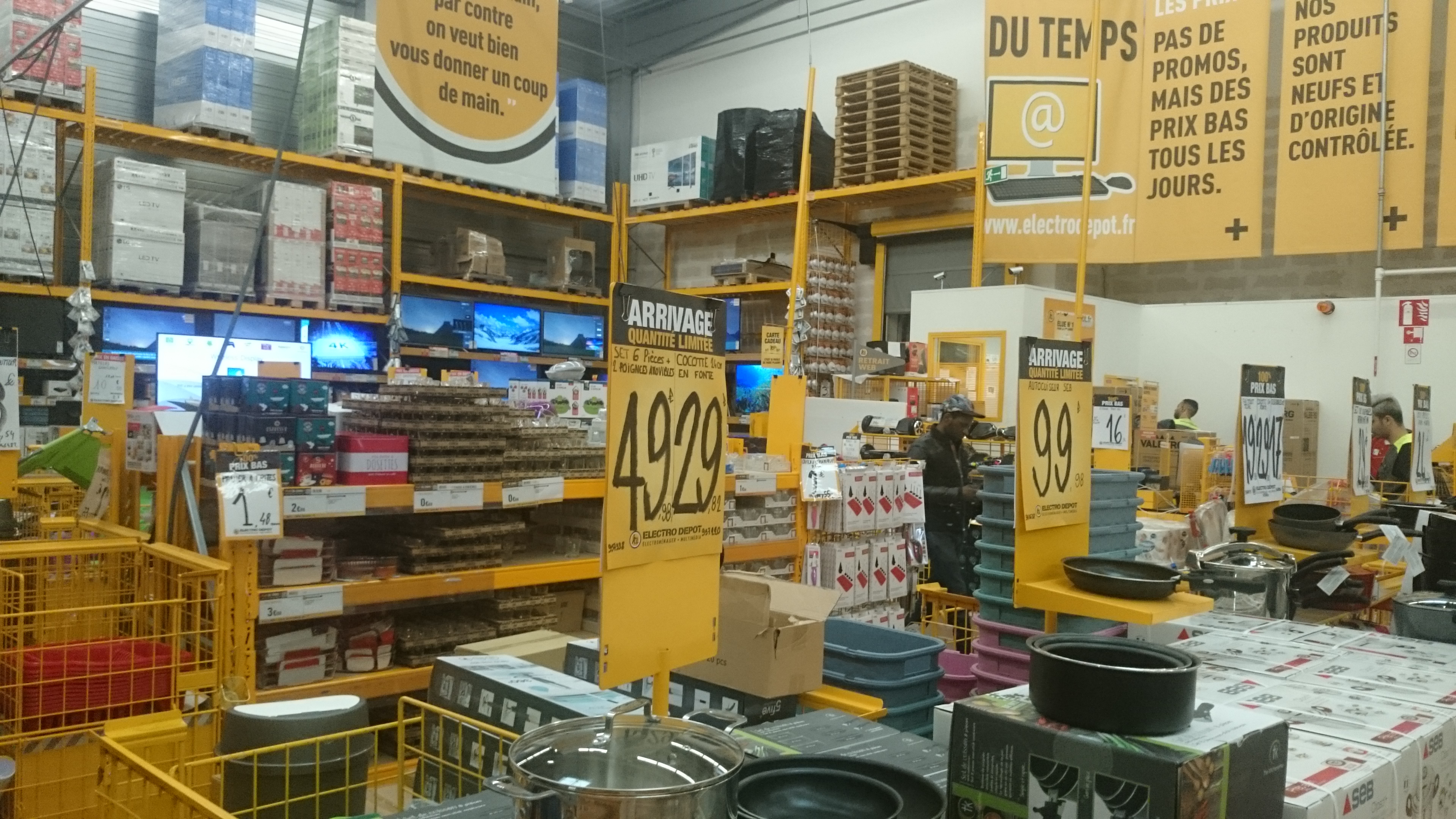 Nous sommes peut être tombés un mauvais jour. Un jour de « flemme » si je peux me permettre. Nous avions besoin de conseils pour l’achat d’un lave vaisselle. Nous nous sommes donc rendu en magasin. D’abord , personne , aucun vendeur ne s’occupe des clients. J’en viens à me demander si les gens qui viennent acheter chez Électro dépôt savent obligatoirement ce qu’ils veulent et que les prix se justifient avec un manque de personnel. Puis nous nous décidons à aller vers les caisse pour demander si , quand même , quelqu’un peut nous aider. Un peu de monde en caisse , en employé nous répond qu’il arrive et de l’attendre dans le rayon. Nous avons en effet attendu. Et attendu. Et attendu encore . Mais personne n’est jamais venu. Au bout d’un moment, nous sommes partis du magasin parce que nous en avions tout simplement marre d’attendre et que, pendant ce temps, j’avais été moi-même répondre à mes questions er faire mon choix sur internet . Un peu agacés, nous nous sommes dit que peut être il y avait toujours autant de monde en caisse et que l’employé était peut être débordé. Pas du tout . Plus personne en caisse et il était toujours au même endroit, en train de jouer avec son stylo… Nous n’avons même pas eu envie d’aller lui faire une remarque, préférant avoir la même attitude que lui : l’ignorance .
